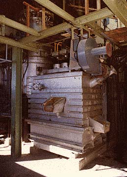 Das Abgas durchläuft eine Strahlungskammer und ein Filter. Das gewonnene Filteroxid hat mit 76 - 79 % Sb einen höheren Antimongehalt als das Kühleroxid mit 66 - 70 % Sb. Insgesamt beträgt das Antimonausbringen in den Oxiden 95,5 - 96 %.