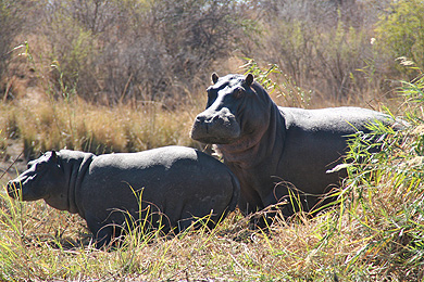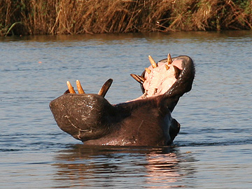 Als der Schöpfer jedem Tier seinen Platz auf der Erde gab, kam ein Hippo-Pärchen und bat ihn, im kühlen Wasser des Zambesi leben zu dürfen, da sie es so sehr liebten. Gott schaute sie an und grübelte: Ihre Mäuler waren so gigantisch, die Zähne so groß und scharf, überhaupt waren sie so riesig und ihr Appetit unersättlich. Er befürchtete, sie würden alle Fische fressen. Außerdem hatte er gerade eben einem anderen Ungeheuer das Flusswasser als Lebensraum zugewiesen - dem Krokodil. Es konnten doch unmöglich zwei solch riesige, hungrige Tiere in Flüssen leben!