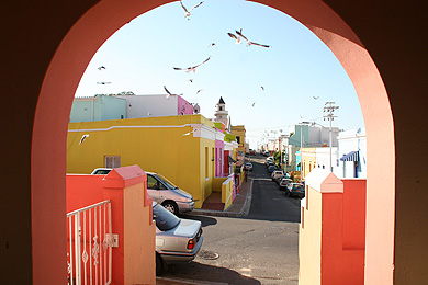 Mit dem Auto fuhren wir anschließend ins historische Bo-Kaap-Viertel. Kleine, knallbunt angestrichene Häuser schmiegen sich an den Hang, Kinder spielen auf der Straße und hinter jeder Ecke - so scheint es - versteckt sich eine Moschee.