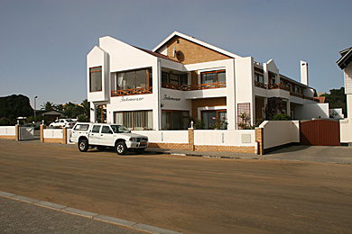 Swakopmund hatten wir gerade rechtzeitig zum Sonnenuntergang an der Jetty erreicht. Im "The Tug" reservierten wir dann gleich noch einen Tisch für den nächsten Abend, bevor wir zum "Intermezzo Guesthouse" fuhren, in dem wir für 2 Nächte ein Zimmer gebucht hatten. Das Intermezzo liegt 150 m vom Strand, der Parkplatz am Haus wird nachts überwacht, die Gastgeber sind sehr nett und unser Zimmer war ruhig, hell und riesig groß. Ins Intermezzo würden wir jeder Zeit wieder gehen.