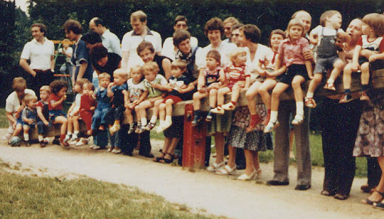 Durch die Spielgruppe der Pfarre St. Johann Baptist habe ich dann Anschluss an andere Mütter mit Kindern gefunden und fühlte mich langsam aber sicher doch wohl im Rheinland. Mit der Spielgruppe haben wir viel unternommen und auch einen Second-Hand-Basar ins Lebens gerufen. Diesen Basar haben wir zehn Jahre lang im Oktober durchgeführt und 1993 dafür einen Preis erhalten. Der Basar bedeutete zwar viel Arbeit, machte aber auch viel Spaß (Elke Hinz sei Dank).