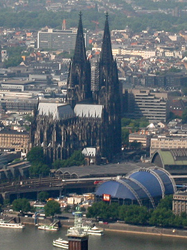 Der Kölner Dom mit seinen zwei 157 m hohen Türmen ist seit Jahrhunderten das Wahrzeichen der Stadt und das bekannteste Architekturdenkmal Deutschlands. Von der Grundsteinlegung bis zur Fertigstellung der größten deutschen Kathedrale fertig gebaut dauerte es 632 Jahre (1248 - 1880). Im Dom haben die Gebeine der Heiligen drei Könige die letzte Ruhestätte gefunden. Im südlichen Turm hängt die größte frei schwingende Glocke der Welt, "Dicke Pitter" genannt.